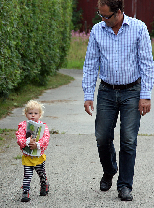 Hjälper morfar att hämta Norran 2 augusti 2010.